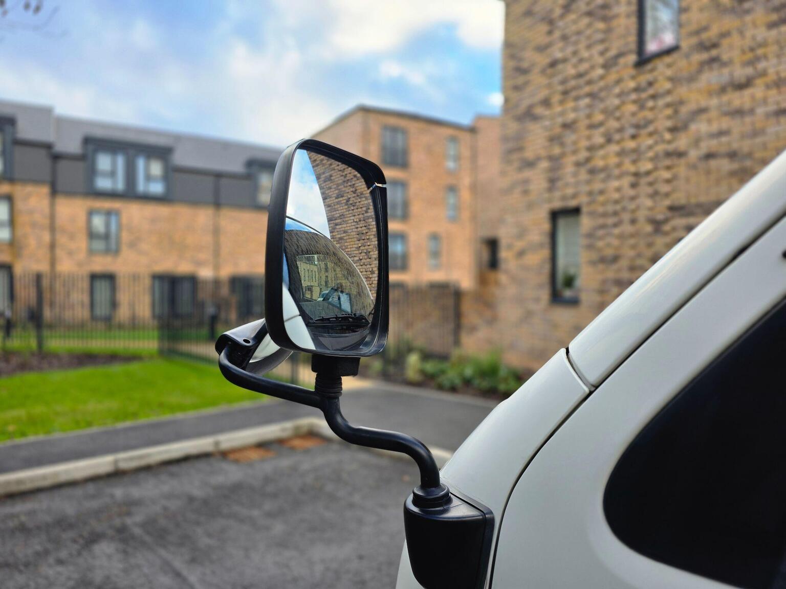 Multiple high-visibility grab rails for secure entry and movement inside