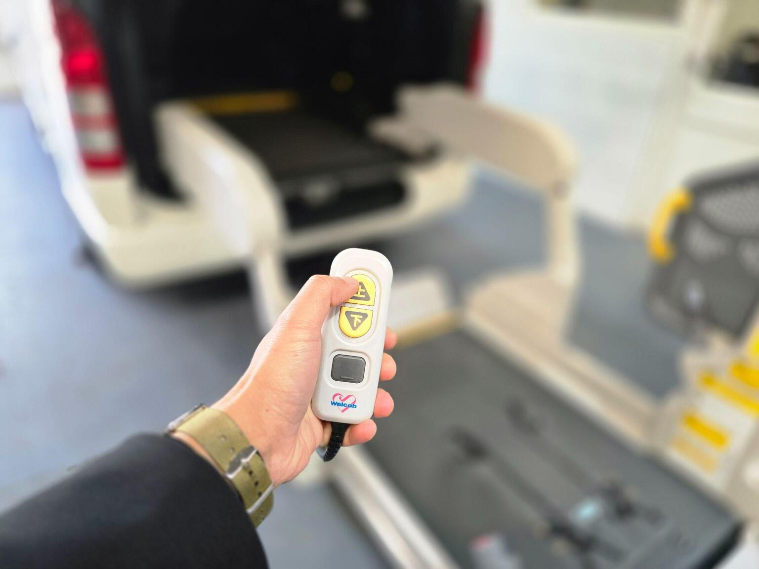 Rear wheelchair access with powered lift platform (remote control operation)